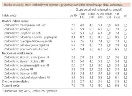 Novac, naravno, ne može kupiti sreću, no u Hrvatskoj, pokazuju istraživanja sociologa, i dalje snažno utječe na osjećaj sreće. Što više novca zarađuju, to su Hrvati i zadovoljniji, Iogično, svojim materijalnim statusom i uspjehom u životu, ali i zdravljem, osjećajem fizičke sigurnosti, prihvaćenošću u zajednici te sigurnošću u budućnost.