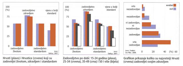 Njen stav potvrđuju i ispitivanja društvenih i životnih vrijednosti među Hrvatima. Nešto više od polovice Hrvatica i Hrvata trenutno je zadovoljno standardom svojeg života, po manje od polovice populacije vjeruje da će se taj standard nastaviti poboljšavati. Oko trećine misli baš suprotno – da će se pogoršati, a što su ljudi stariji, to im je optimizam slabiji.