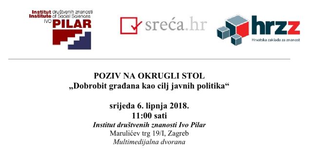 Pozivnica za Okrugli stol DOBROBIT GRAĐANA KAO CILJ JAVNIH POLITIKA; Zagreb, 6. lipnja 2018.
