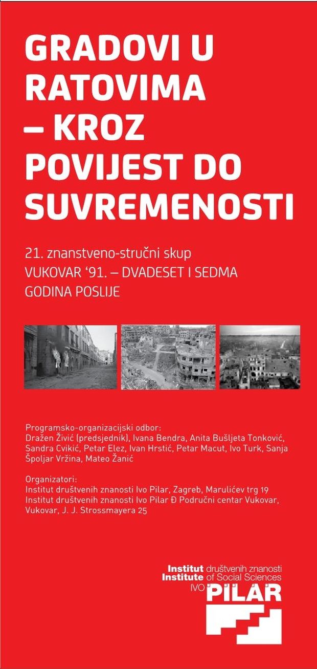 U okviru službenog programa Dana sjećanja na žrtvu Vukovara 1991., 14. i 15. studenoga 2018., u organizaciji Instituta društvenih znanosti Ivo Pilar održan je tradicionalni 21. znanstveno-stručni skup “Vukovar 91. – dvadeset i sedma godina poslije”. Tema ovogodišnjega skupa “Gradovi u ratovima – kroz povijest do suvremenosti” okupila je dvadesetak uglednih znanstvenika i stručnjaka (sociologa, antropologa, teologa, povjesničara, demografa, stručnjaka za obrambene studije, novinara) koji su s različitih motrišta prišli temi, odnosno osvijetlili, kako je to u naslovu svojega uvodnog predavanja istaknuo prof. dr. sc. Ozren Žunec, deset tisuća godina povijesti gradova u ratovima i ratova u gradovima. − Pozivnica i program | Knjiga sažetaka | Iz medija