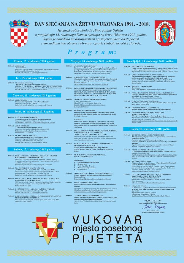 − POZIVNICA I PROGRAM za 21. znanstveno-stručni skup Vukovar ‘91. “Gradovi u ratovima – kroz povijest do suvremenosti”; Vukovar, 14.-15. studenoga 2018.