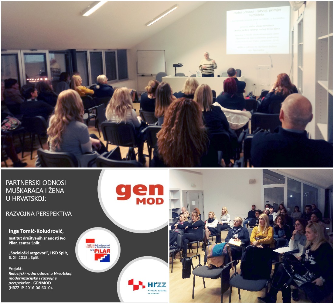 U okviru aktivnosti koje se provode na projektu GENMOD – Relacijski rodni odnosi u Hrvatskoj: modernizacijske i razvojne perspektive (HRZZ-IP-2016-06-6010), u Splitu je 6. prosinca 2018. organiziran i održan javni skup na kojemu su predstavljeni rezultati kvantitativnih analiza projekta