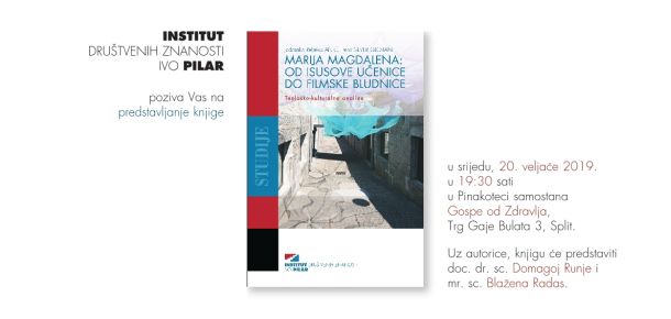 Institut društvenih znanosti Ivo Pilar organizirao je predstavljanje knjige „Marija Magdalena: Od Isusove učenice do filmske bludnice“ koje se održalo 20. veljače 2019. u Pinakoteci samostana Gospe od Zdravlja, Trg Gaje Bulata 3, Split. Uz autorice Jadranku Rebeku Anić i Irenu Sever Globan, knjigu su predstavili doc. dr. sc. Domagoj Runje i mr. sc. Blažena Radas.