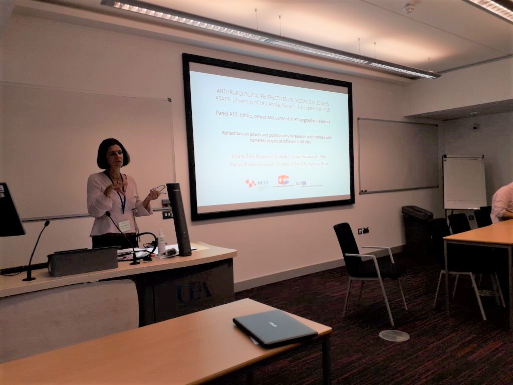 U okviru međunarodne konferencije ASA Anthropological Perspectives on Global Challenges, održane u Norwichu na Sveučilištu u Istočnoj Angliji od 3. do 6. rujna 2019., dr. sc. Lynette Šikić Mićanović s dr. sc. Maricom Marinović Golubić održala je izlaganje na panelu A13: Ethics, power and consent in ethnographic fieldwork. − O konferenciji | Program konferencije