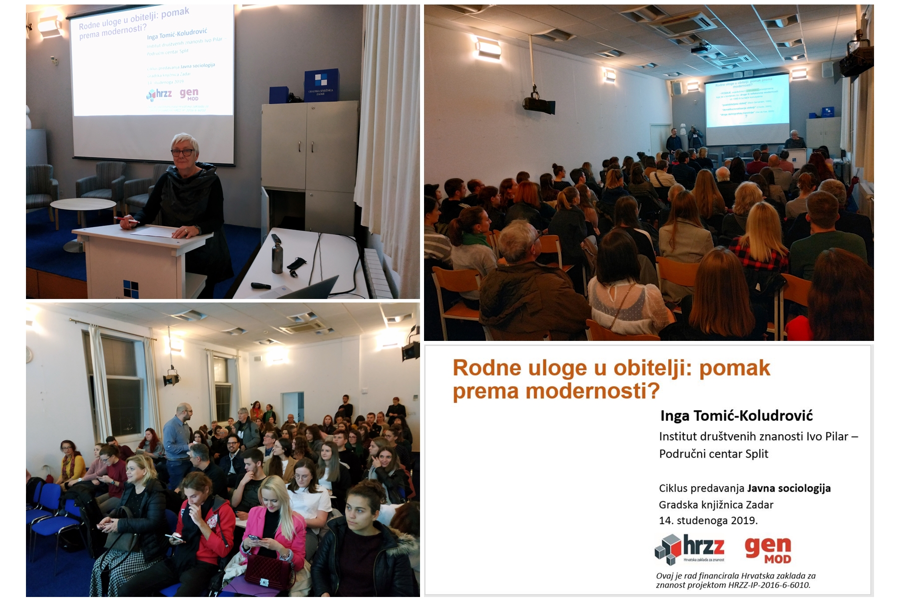 U okviru aktivnosti koje se provode na projektu GENMOD – „Relacijski rodni identiteti u Hrvatskoj: modernizacijske i razvojne perspektive“, u Gradskoj knjižnici Zadar je 14. studenoga 2019. održan javni skup na kojemu su predstavljeni rezultati kvantitativnih i kvalitativnih analiza projekta na temu rodnih uloga u obitelji