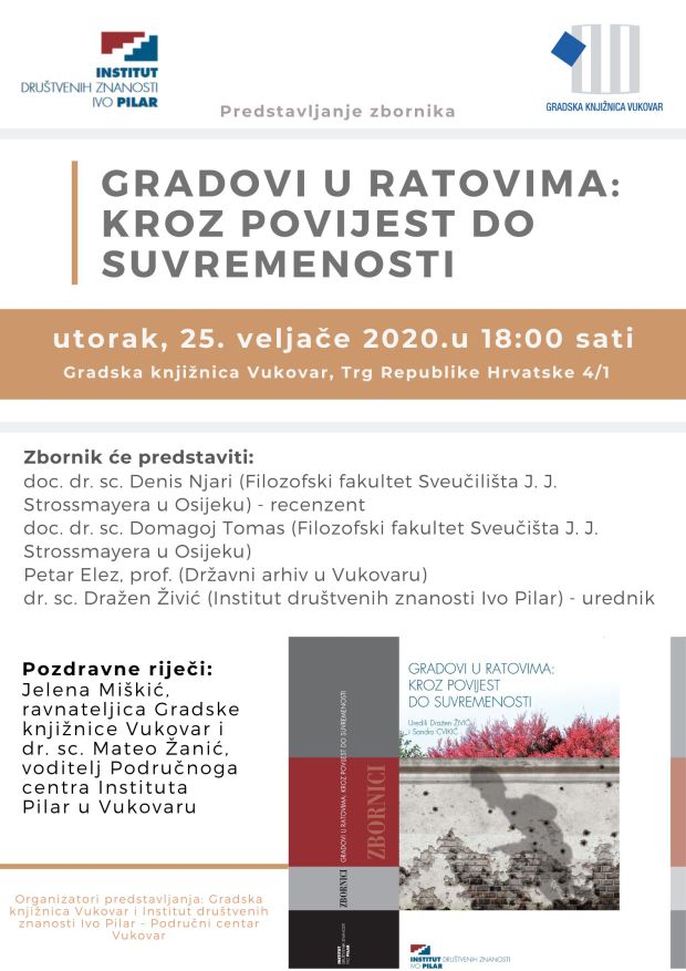 U organizaciji Područnoga centra Instituta Pilar u Vukovaru i Gradske knjižnice Vukovar 25. veljače 2020. u prostorijama Knjižnice svečano je predstavljen najnoviji zbornik radova Instituta Pilar “Gradovi u ratovima: kroz povijest do suvremenosti”. − Pozivnica
