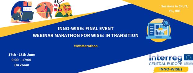 Projekt INNO-WISEs financiran od strane EU programa INTERREG Central Europe završava 30. lipnja 2020. godine. Završni događaj projekta „INNO-WISEs Final Event: Webinar Marathon for WISEs in Transition” održat će se 17. i 18. lipnja 2020. godine u formi serije webinara.