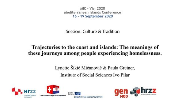 As part of this year’s 3rd international multidisciplinary Mediterranean Islands Conference, held on the island of Vis from 16th to 19th September 2020, a presentation entitled Trajectories to the coast and islands: The meanings of these journeys among people experiencing homelessness was presented online by Dr. Lynette Šikić-Mićanović with Paul Greiner. This paper was based on qualitative data gathered from two projects: GENMOD project Relational Gender Relations in Croatia: Modernization and Development Perspectives (HRZZ-IP-2016-06-6010) and the CSRP project Exploring Homelessness and Pathways to Social Inclusion: A Comparative Study of Contexts and Challenges in Swiss and Croatian Cities (No. IZHRZO_180631/1).