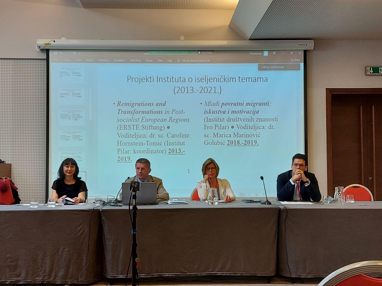 Na konferenciji su u panelu predstavljena znanstvena istraživanja Instituta Pilar o hrvatskom iseljeništvu. Institut Pilar, koji ove godine obilježava 30 godina svoga postojanja, profilirao se u posljednja tri desetljeća ne samo u najveći javni institut u području društvenih znanosti u Hrvatskoj nego i u jednu od domovinskih adresa na kojima se provode znanstvena istraživanja o hrvatskom iseljeništvu. U Institutu ima više znanstvenika koji se multidisciplinarnim istraživačkim pristupom bave hrvatskim iseljeništvom, identitetom, migracijama, demografskim pitanjima i srodnim temama. U posljednja tri desetljeća bilo je dvadesetak znanstvenih projekata posvećenih hrvatskoj dijaspori, npr. u najnovije vrijeme Hrvatima u Australiji i Novom Zelandu, a održavaju se i znanstveni skupovi i druge aktivnosti povezane s iseljeničkim temama. Tiskano je desetak zbornika radova i posebnih izdanja o Hrvatima izvan Hrvatske, među kojima se kao svojevrstan nakladnički pothvat može izdvojiti Leksikon hrvatskog iseljeništva i manjina (2020).