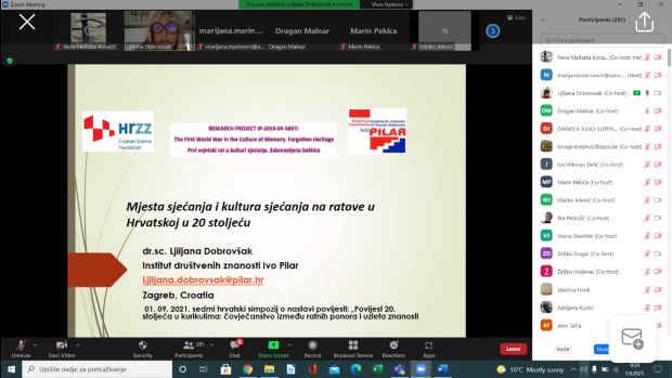 U organizaciji Agencije za odgoj i obrazovanje od 1. do 3. rujna 2021. godine održan je u online okruženju državni stručno-znanstveni skup za učitelje i nastavnike povijesti u osnovnim i srednjim školama u Republici Hrvatskoj na kojem je dr. sc. Ljiljana Dobrovšak sudjelovala pozvanim predavanjem i prezentacijom na temu “Mjesta sjećanja i kultura sjećanja na ratove u Hrvatskoj u 20. stoljeću”