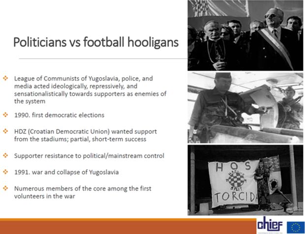 Benjamin Perasović, Marko Mustapić i Ivan Hrstić su na temelju podataka znatnim dijelom prikupljenih u okviru radnog paketa 4 (Kvalitativno istraživanje u neformalnim obrazovnim okruženjima) održali online izlaganje pod naslovom The Demise of Yugoslavia and Football: The roots of the ultras subculture in Croatia. U izlaganju su prikazani rezultati istraživanja o pojavi i razvoju navijačke subkulturalne scene od početka 1980-ih. To je razdoblje liberalizacije unutar tadašnjeg socijalističkog društvenog uređenja u Jugoslaviji praćeno brojnim drugim društvenim, ekonomskim, kulturnim i političkim procesima koji su na kraju doveli do ratova i početka konačnog raspada Jugoslavije 1991.
