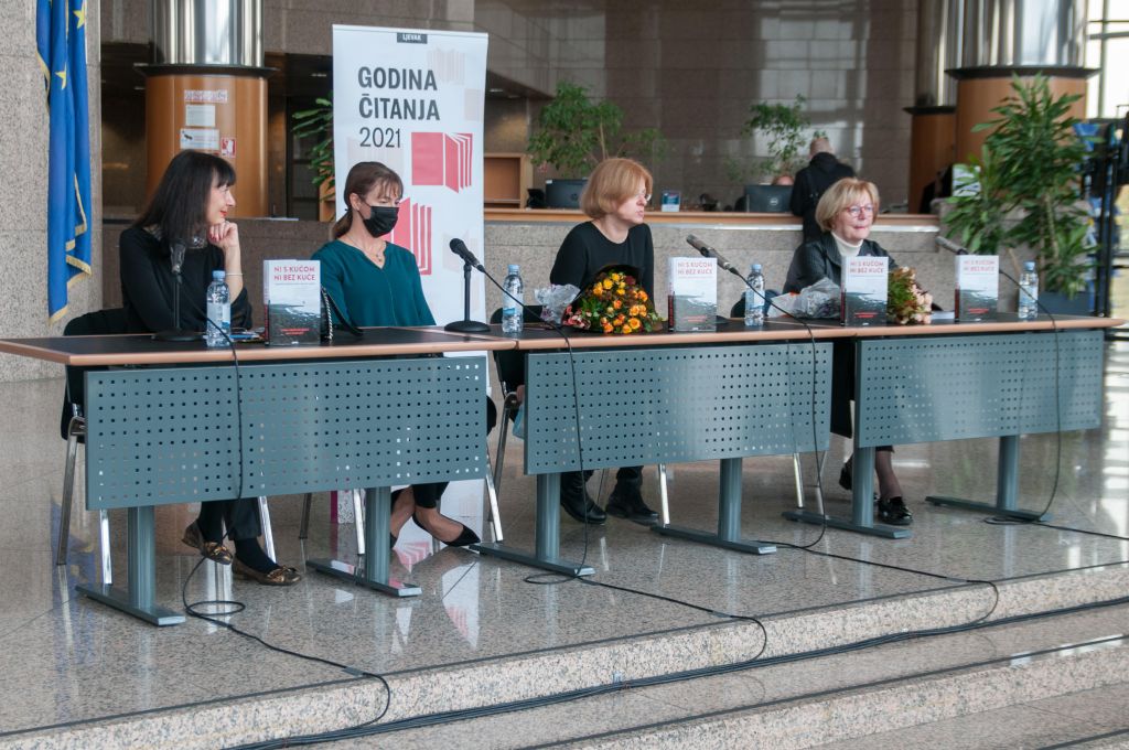 Autorice knjige Ni s kućom ni bez kuće su Ana Barbarić i Ivana Hebrang Grgić. Knjiga na temelju zaboravljenih primjeraka publikacija hrvatskih novina koje u Novom Zelandu izlaze od kraja 19. stoljeća kao i na temelju brojnih drugih povijesnih izvora i neformalnih kontakata donosi nove spoznaje o komunikacijskim modelima Hrvata u Novome Zelandu tijekom povijesti. Predstavljanje je ulomcima iz knjige obogatio glumac Goran Grgić.