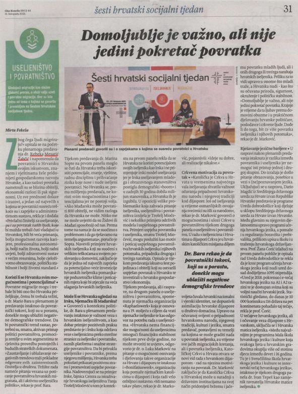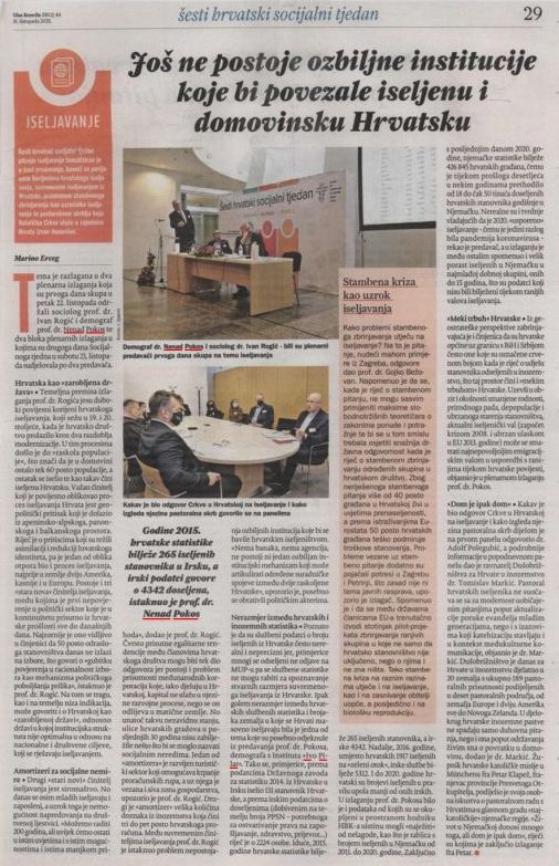 – Glas Koncila: Šesti hrvatski socijalni tjedan, 31. 10. 2021., str. 4, 29 i 31.