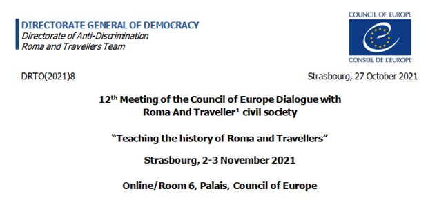 Dr. sc. Danijel Vojak sudjelovao je 2. studenoga 2021. kao izlagač online na temu „Croatia’s Roma curriculum in 2020/2021 curricula reform“ u sesiji „Inclusion of the history of Roma and/or Travellers in school curricula and teaching materials“ na 12th Meeting of the Council of Europe Dialogue with Roma And Traveller civil society – “Teaching the history of Roma and Travellers”