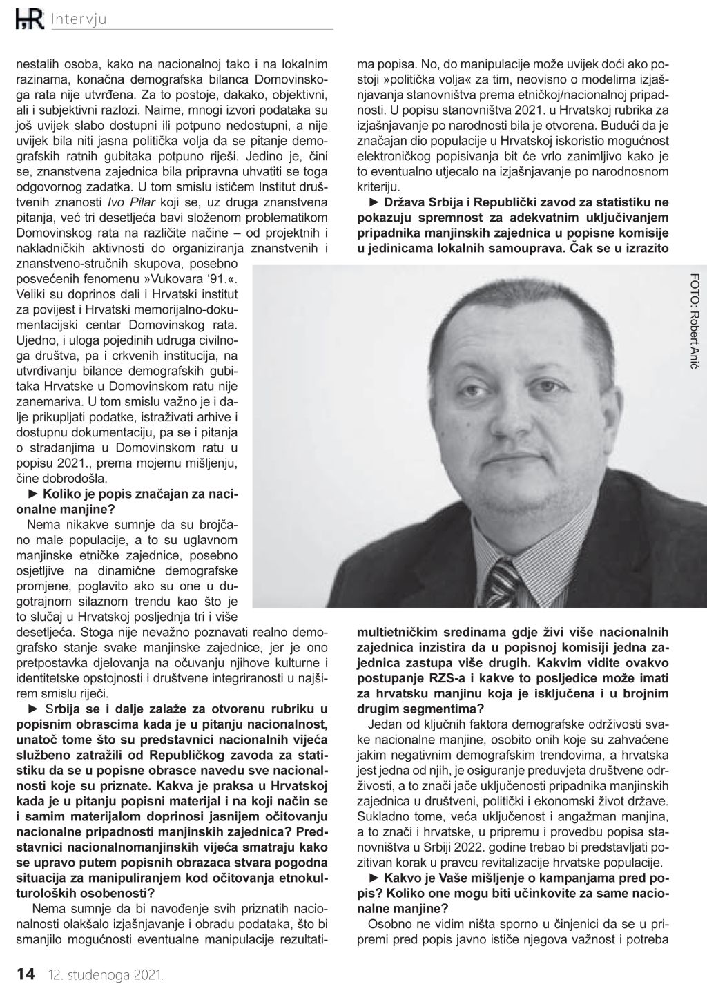 – Hrvatska riječ (tiskano izdanje): Popis – demografska podloga za planiranje, 12. 11. 2021.