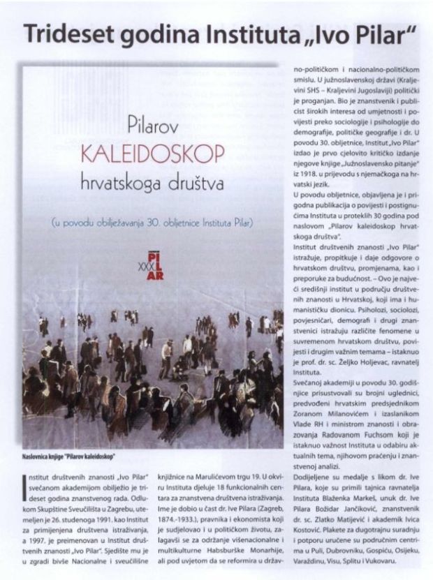Zagreb moj grad u broju od 20. prosinca 2021. objavljuje prilog pod naslovom “Trideset godina Instituta Ivo Pilar”