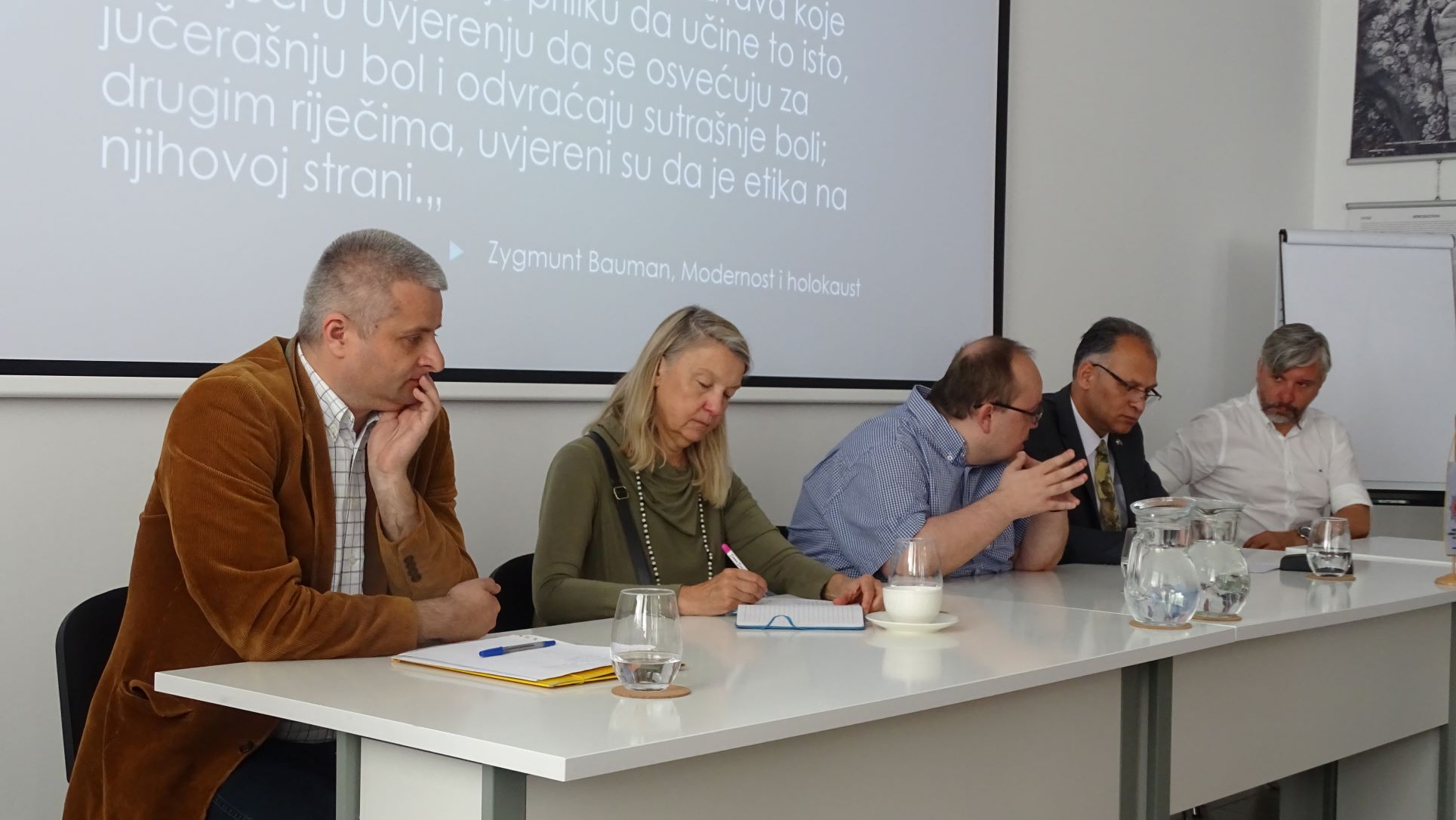 Uz dr. sc. Danijela Vojaka, panelisti na tribini su bili Veljko Kajtazi (zastupnik u Hrvatskom saboru), Vesna Teršelič (voditeljica Documente – Centra za suočavanje s prošlošću), Hrvoje Klasić (povjesničar, Filozofski fakultet u Zagrebu), Ivo Pejaković (ravnatelj Javne ustanove spomen područje Jasenovac). Tribinu je moderirala Dunja Jakopović, kustosica Romskog memorijalnog centra Uštica.