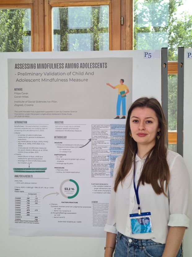 U okviru poster-sekcije Filipa Ćavar predstavila je preliminarne rezultate validacije upitnika usredotočene svjesnosti (engl. mindfulness).