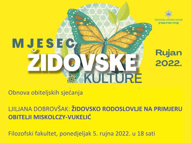 U sklopu manifestacije MJESEC ŽIDOVSKE KULTURE dr. sc. Ljiljana Dobrovšak održala je 5. rujna 2022. na Filozofskom fakultetu u Osijeku predavanje „Židovsko rodoslovlje na primjeru obitelji Miskolczy-Vukelić“. U organizaciji Židovske općine Osijek, manifestacija je održana pod radnim motom OBNOVA a predavanje pod radnim naslovom “Obnova obiteljskih sjećanja”