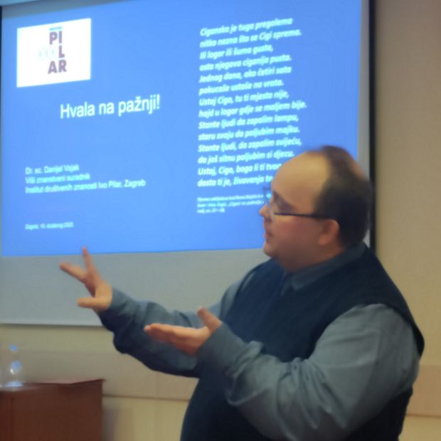 Tema izlaganja dr. sc. Vojaka bila je Genocidni progon nepoželjnih ili o povijesti stradanja Roma u Nezavisnoj Državi Hrvatskoj, 1941.-1945. Na seminaru su sudjelovali nastavnici osnovnih i srednjih škola iz Hrvatske.