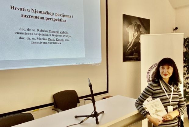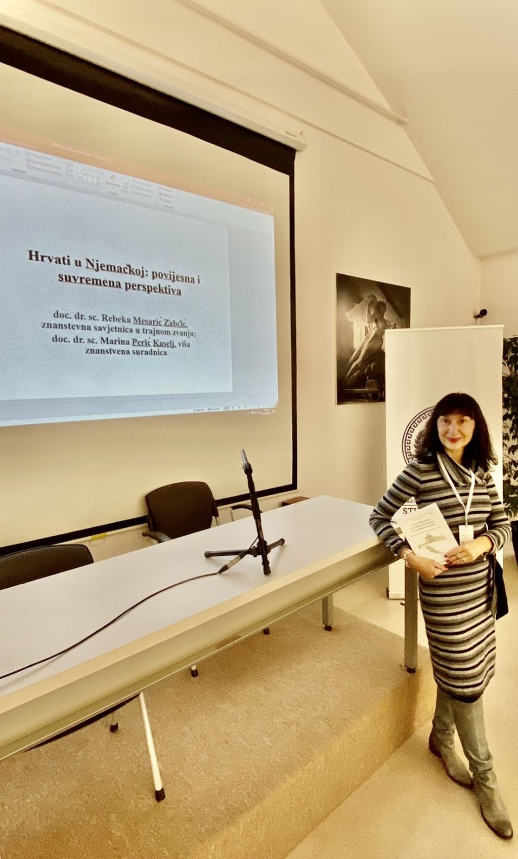 Dr. sc. Rebeka Mesarić Žabčić održala je 28. listopada 2022. godine u kooatorstvu s dr. sc. Marinom Perić Kaselj (Institut za migracije i narodnosti) predavanje na II. međunarodnoj znanstveno-stručnoj konferenciji “Suvremeni usud gastarbajterskog naslijeđa Hrvatske” pod naslovom “Hrvati u Njemačkoj: povijesna i suvremena perspektiva”