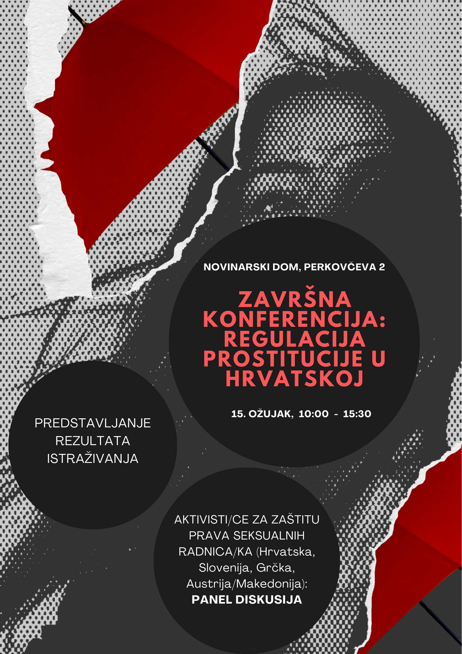 U prvom dijelu konferencije članovi istraživačkog tima izložili su rezultate provedenih istraživanja, dok se u drugom dijelu konferencije održala panel rasprava s aktivisti(ca)ma za zaštitu prava seksualnih radnica/ka iz Hrvatske, Slovenije, Grčke te Austrije i Makedonije.