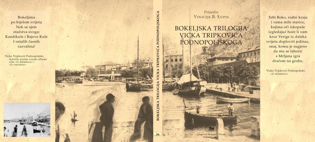 Knjiga Bokeljska trilogija Vicka Matova Tripkovića Podnopoljskog svojevrsna je rekonstrukcija pripovijedaka toga bokeljskog zavičajnog književnika, sklopljenih u smislenu cjelinu, po uzoru na Dubrovačku trilogiju Iva Vojnovića. Dvije pripovijetke i jedna crtica povezane su u svojevrstan „bokeški“ panoptikum druge polovice 19. stoljeća – presjek ljudi i običaja sredozemnoga krajnjeg hrvatskog juga. Stihovima iz pripovijetke „Iz dekadence“ autor ove sjetne trilogije ostavlja oporuku hrvatskoj zajednici na zalasku: „Tebi Boko, rodni kraju i vama mile starice, kojima oči iskopaše izgledajuć hoće li vam kroz Verige iz daleka svijeta doploviti jedinac, onaj, komu je sugjeno da mu se lahorić s Mrljana igra dračom na grobu“.