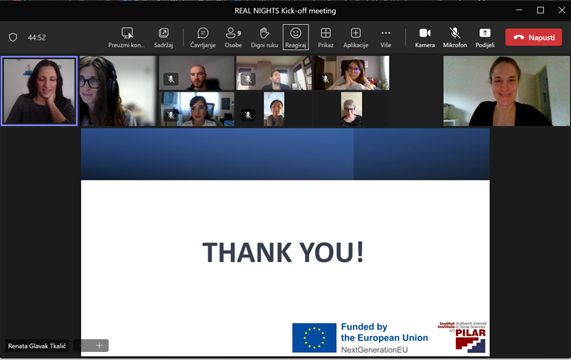 Inicijalni sastanak istraživačkog tima projekta Istraživanje noćnog života: realno i virtualno okruženje (REAL NIGHTS) održan je 24. siječnja 2024. Ovaj četverogodišnji znanstveni projekt financira se sredstvima Europske unije – NextGenerationEU. Voditeljica projekta je dr. sc. Renata Glavak Tkalić