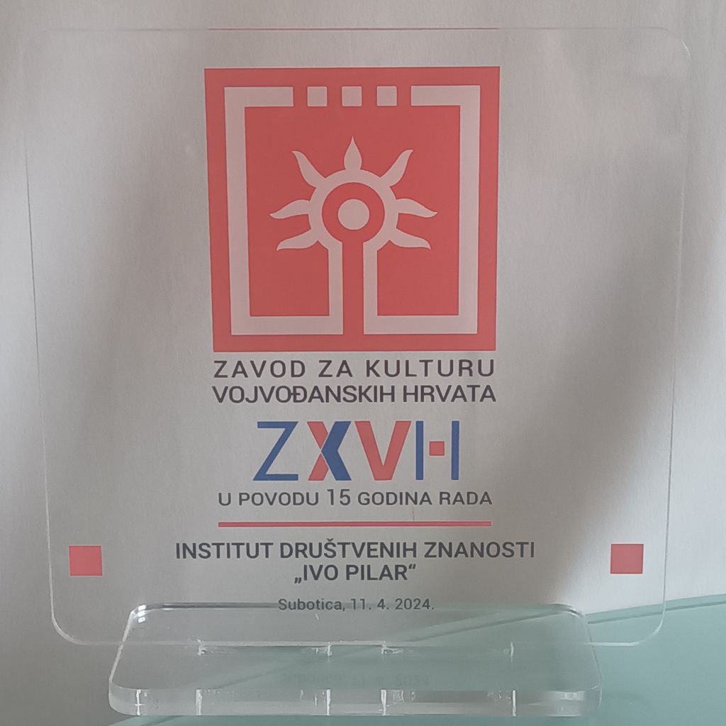 Na poziv gđe Katarine Čeliković, ravnateljice Zavoda za kulturu vojvođanskih Hrvata iz Subotice (Republika Srbija), pomoćnik ravnatelja Instituta društvenih znanosti Ivo Pilar dr. sc. Dražen Živić i znanstvena suradnica u Područnom centru Instituta Pilar u Vukovaru dr. sc. Sandra Cvikić, sudjelovali su 11. travnja 2024. na svečanom obilježavanju 15. godišnjice od osnutka Zavoda, s kojim Institut već jedno desetljeće vrlo uspješno surađuje u različitim znanstvenim aktivnostima. Tom prigodom ravnateljica Čeliković uručila je dr. sc. Draženu Živiću prigodnu zahvalnicu Zavoda za dosadašnju suradnju s Institutom