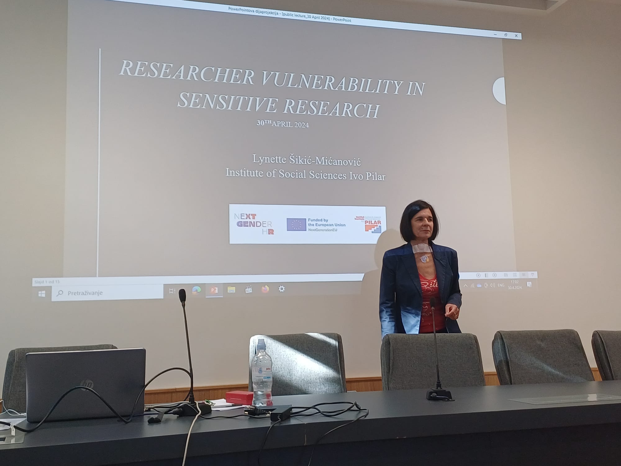 U organizaciji Sekcije za subkulture Hrvatskog sociološkog društva i Instituta društvenih znanosti Ivo Pilar u Multimedijalnoj dvorani Instituta Pilar 30. travnja 2024. održano je predavanje dr. sc. Lynette Šikić-Mićanović pod nazivom Researcher vulnerability in sensitive research