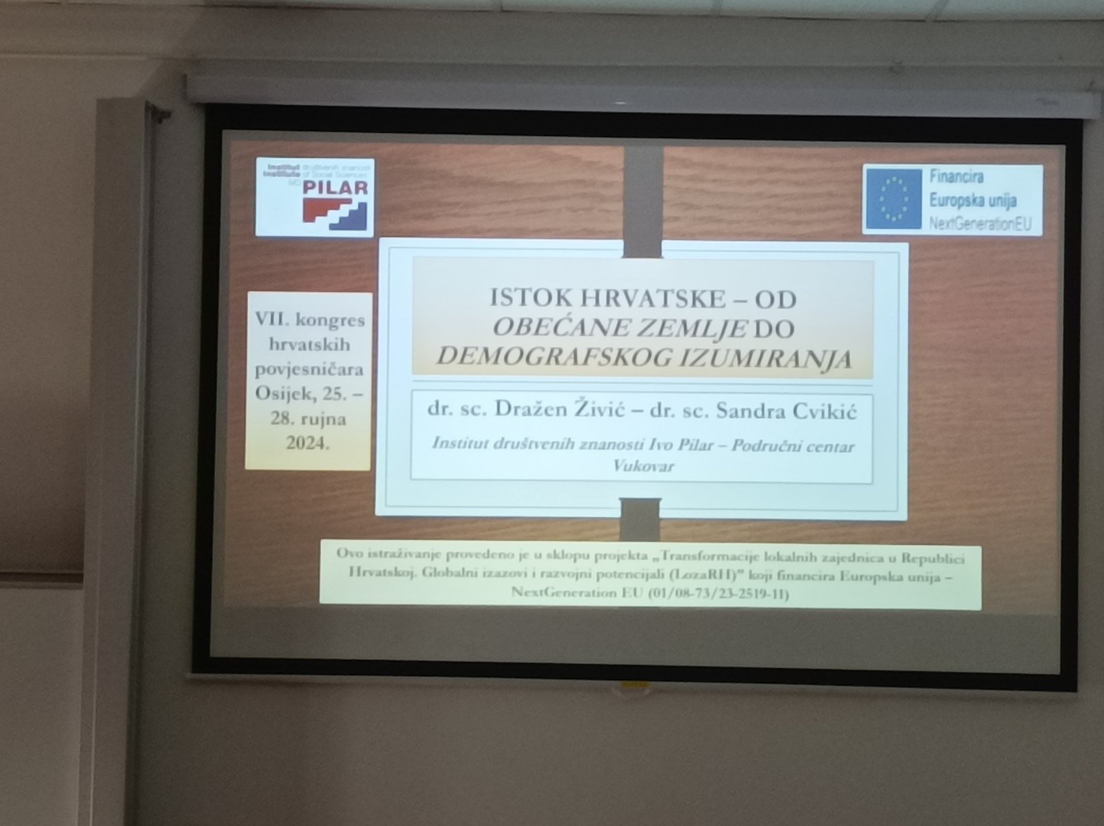 Članovi istraživačkog tima projekta “Transformacije lokalnih zajednica u Republici Hrvatskoj. Globalni izazovi i razvojni potencijali (LozaRH)” koji financira Europska unija – NextGeneration EU (voditelj dr. sc. Mateo Žanić), dr. sc. Dražen Živić i dr. sc. Sandra Cvikić sudjelovali su na VII. kongresu hrvatskih povjesničara koji se na Filozofskom fakultetu Sveučilišta Josipa Jurja Strossmayera u Osijeku održao od 25. do 28. rujna 2024.