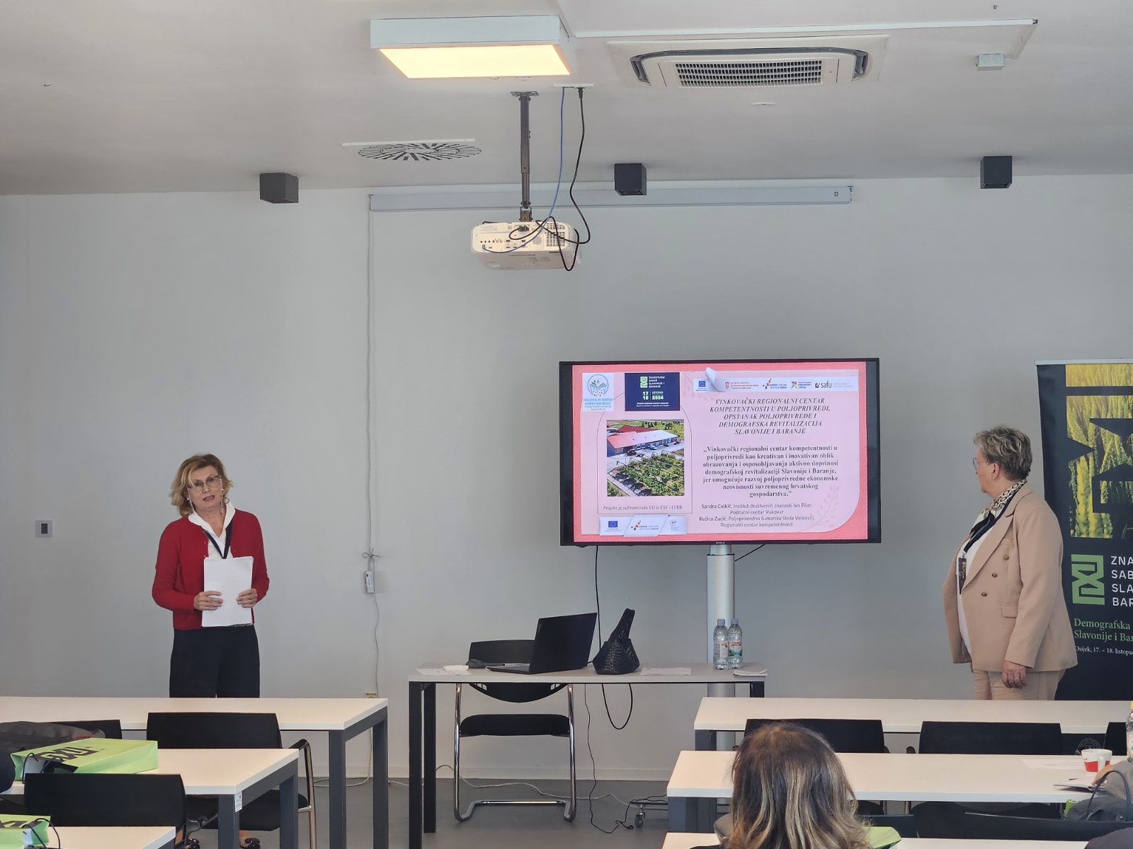 Dr. sc. Sandra Cvikić je u suradnji s Ružicom Zucić sudjelovala na Znanstvenom saboru Slavonije i Baranje 17. – 18. listopada 2024. godine u Osijeku. Tema ovogodišnjeg sabor je bila Demografska revitalizacija Slavonije i Baranje u sklopu kojega je predstavljen rad Vinkovački regionalni centar kompetentnosti u poljoprivredi, opstanak poljoprivrede i demografska revitalizacija Slavonije i Baranje