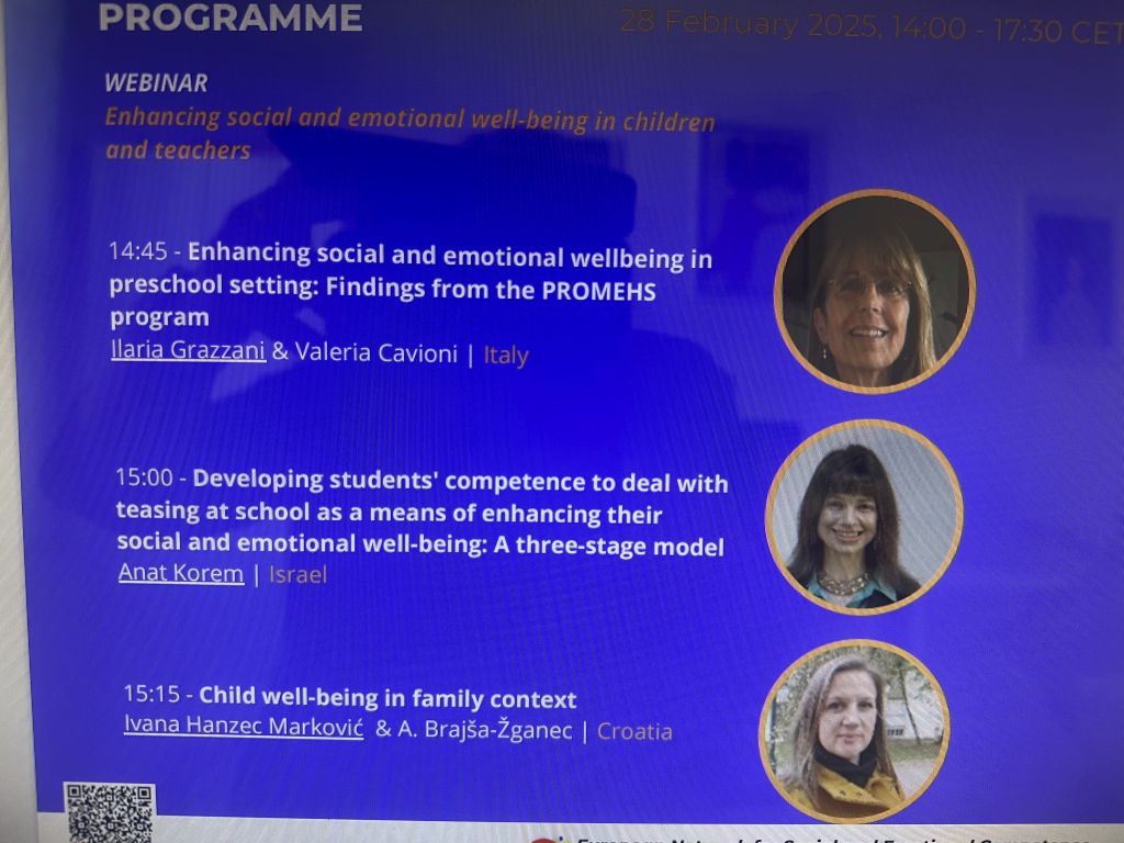 Onlne webinar je održan pod krovnim naslovom Poboljšanje socijalne i emocionalne dobrobiti učitelja i djece na kojem su predstavljena aktualna empirijska istraživanja u ovom području iz cijeloga svijeta. Izlaganje je izazvalo velik interes članova mreže ENSEC.