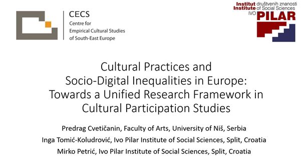 U izlaganju pod naslovom „Socio-digitalne nejednakosti u kulturnom polju: prema sjedinjenom istraživačkom okviru u proučavanju kulturne participacije“ prikazali su svoj model istraživanja koji koristi indikatore i iz offline i iz online praksi povezanih s umjetnošću ali i svakodnevnim kulturnim praksama.