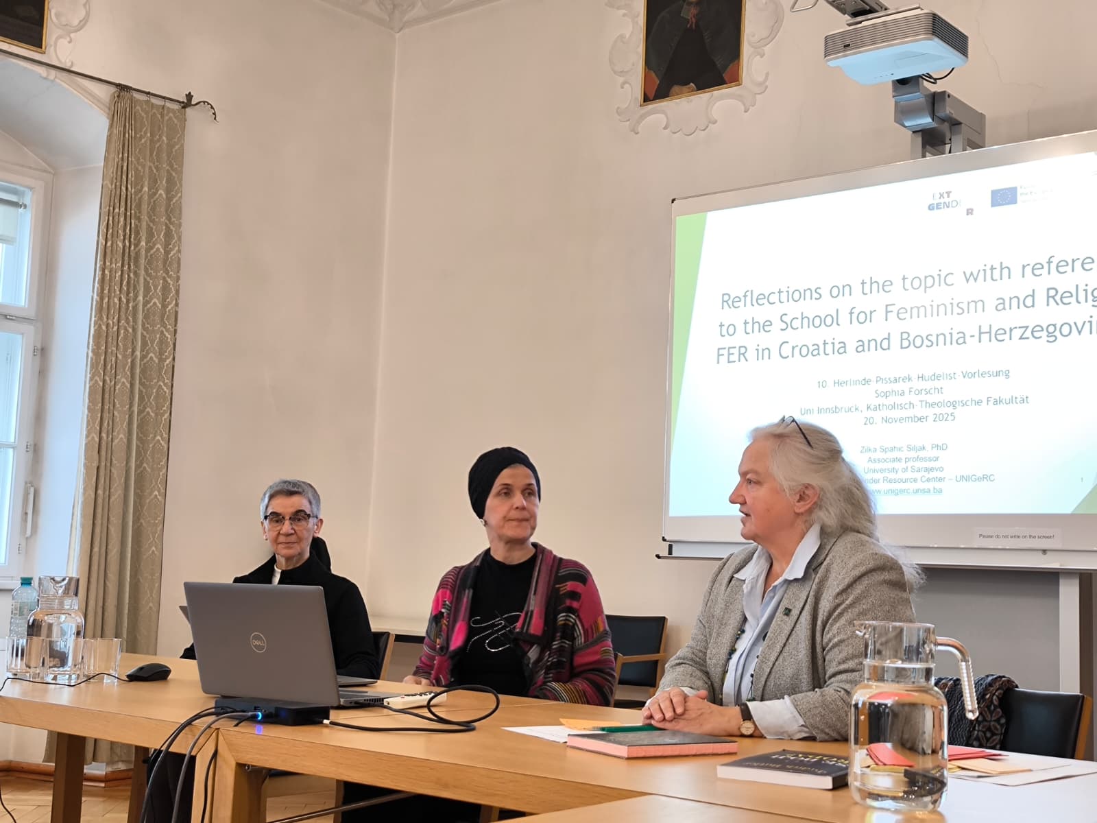 U sklopu radionice Zum Stand der Kontroversen um Gender in den Religionsgemeinschaften (O stanju kontroverzi oko roda u vjerskim zajednicama) održale su 21. studenoga 2025. predavanje „Überlegungen zum Thema anhand der Online-Schule für Feminismus und Religion (FER)“ („Razmatranja o toj temi na primjeru Online škole feminizma i religije (FER)“).