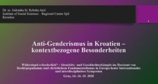 Dr. sc. Jadranka Rebeka Anić, znanstvena savjetnica u Institutu Pilar – Područni centar Split sudjelovala je na međunarodnom simpoziju „Widerstand erforderlich? Identitäts- und Geschlechterkämpfe im Horizont von Rechtspopulismus und christlichem Fundamentalismus in Europa heute“ (Poziv na otpor? – Identitetski i rodni sukobi u kontekstu desnog populizma i kršćanskog fundamentalizma u… Pročitaj više o Dr. sc. Jadranka Rebeka Anić na simpoziju o identitetskim i rodnim sukobima u kontekstu desnog populizma i kršćanskog fundamentalizma