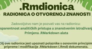 Poziv na radionicu Transparentnost analitičkih pristupa u znanstvenim istraživanjima: Primjena .RMarkdown alata; Zagreb, 9. 4. 2025.