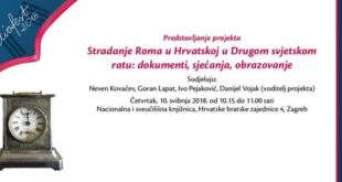 U skopu Festivala povijesti KLIOFEST 2018. u četvrtak, 10. svibnja 2018. u Nacionalnoj i sveučilišnoj knjižnici od 10:15 do 11:00 održat će se predstavljanje projekta Stradanje Roma u Hrvatskoj u Drugom svjetskom ratu: dokumenti, sjećanja, obrazovanje. Na predstavljanju će sudjelovati Neven Kovačev, Goran Lapat, Ivo Pejaković i Danijel Vojak (voditelj… Pročitaj više o KLIOFEST 2018.: Predstavljanje projekta “Stradanje Roma u Hrvatskoj u Drugom svjetskom ratu”